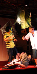 KETEP's Goals Southeast Asian cultures have many narratives depicting traditional agrarian life integrated with birds, animals, plants, rivers, seas, and mountains, but in the 21st century, more and more Asians live in cities. Modern technology has both concealed humans' dependence on eco-systems and assisted in the unsustainable exploitation of natural resources. Governments, attempting to achieve quick prosperity, have allowed local populations and multinational corporations to devastate the natural environment on land and in the sea both within and outside their national borders. Southeast Asia has some of the world's last large swathes of forests that are now disappearing through extensive logging, unregulated mining, damming, pollution, poaching, monocrop plantations, as well as the unplanned growth of cities. Governments and corporations have told people they must choose between their own material prosperity and the protection of nature, but KETEP adopts the premise that the "economy versus ecology" conflict is a false one, and that the only good economy is one based on sound ecological principles that keep harmful human impact to a minimum. Contemporary urban citizens are addicted to the convenience of cheap mass-produced and disposable goods and unthinkingly contribute to the destruction of rural areas. KETEP focuses on the behavior of the city dweller and highlights the decisions they make as consumers. KETEP performances present environmental protection not as a marginal activity or an old-fashioned "anti-progress movement," but as a necessary forward-looking perspective for urban people. |